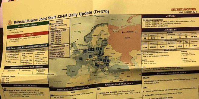 مجموعة من الوثائق المسربة توضح بالتفصيل خططاً تتعلق بمحاولة القوات الأوكرانية شن هجوم ضد روسيا في الربيع، وتحتوي على معلومات مختصرة حول 12 لواء أوكرانيا قيد التشكيل، 9 منها تم تدريبها وتزويدها بالعتاد من قبل الولايات المتحدة وحلفاء “الناتو” الآخرين، كما تفترض المواد المسربة أنه من المتوقع أن تكون 6 من هذه الألوية التسعة جاهزة بحلول الـ 31 من آذار، والباقي بحلول الـ 30 من نيسان، وتشير الوثائق إلى الحاجة لأكثر من 250 دبابة و350 مدرعة لهذه التشكيلات.