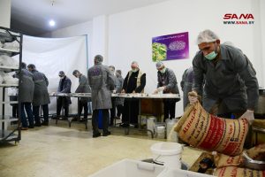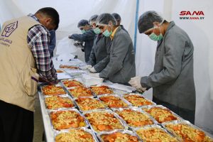 بدعم وتمويل وزارة الأوقاف وجهود مجموعة من المتطوعين في جمعية السراج الخيرية بمدينة عربين بريف دمشق، يتم يومياً إعداد أكثر من 1300 وجبة إفطار ضمن مطبخ الجمعية تستهدف أسر الشهداء والمتضررين من الزلزال والأرامل والأيتام والفقراء وذوي الإعاقة، توزع ضمن المدينة والمناطق المحيطة بها.