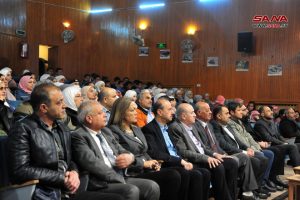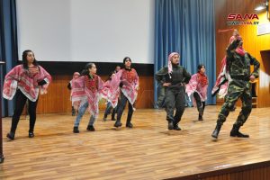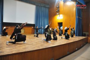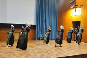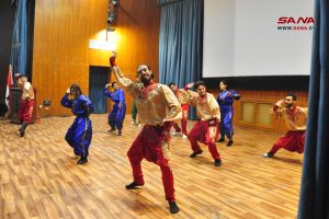 بأغانٍ وطنية وتراثية أقيم اليوم حفل فني فلكلوري راقص على هامش فعاليات إحياء يوم القدس العالمي، وذلك في المركز الثقافي العربي بكفرسوسة.
