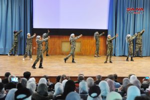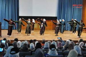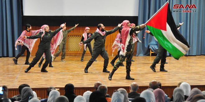 وتضمن الحفل مجموعة من اللوحات التعبيرية الراقصة التي قدمها أربع فرق فنية شبيبية إضافة إلى فرقة الفنون الشعبية لفرع دمشق لاتحاد شبيبة الثورة رابطة الميدان، مجسدين التراث السوري والفلسطيني ودوره الثقافي الوطني وما يحمله من إرث يعكس قيمة فنية متفردة.