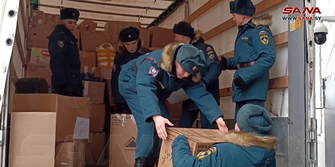 أرسلت السفارة السورية في موسكو 100 طرد من المساعدات الإنسانية لصالح اللجنة العليا للإغاثة لتقديمها إلى متضرري الزلزال في سورية.