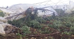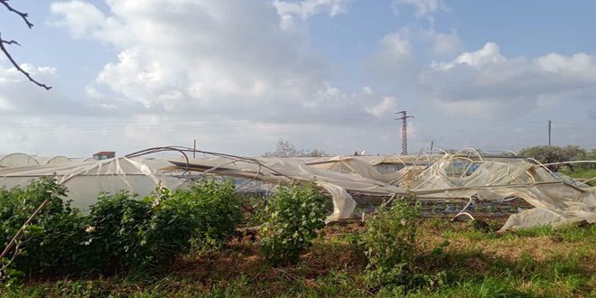 وأوضح مدير زراعة اللاذقية باسم دوبا في تصريح لمراسلة سانا أن الأضرار طالت نحو 20 بيتاً محمياً في حميميم والشراشير والروضة، لافتاً إلى أن الأضرار كانت متفاوتة بين تكسير الهياكل المعدنية وتطاير شرائح النايلون وأضرار زراعية أدت إلى تلف في المحاصيل شملت 9 بيوت محمية.
