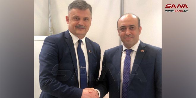 بحث وزير الرياضة والسياحة البيلاروسي سيرغي كافلتشوك، مع السفير السوري في بيلاروس محمد العمراني علاقات الصداقة والتعاون وسبل تعزيزها في المجالين السياحي والرياضي.