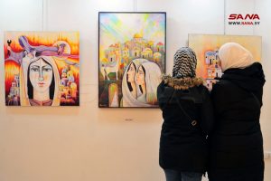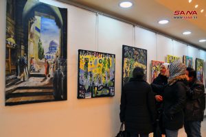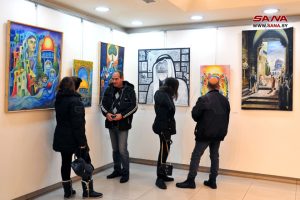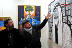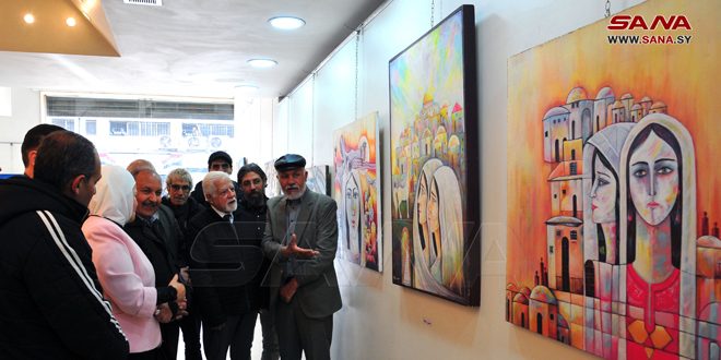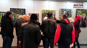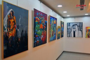 المعرض الذي افتتح اليوم في صالة الشعب للفنون الجميلة تضمن أربعين لوحة لاثنين وعشرين فناناً وفنانة من سورية وفلسطين واليمن بالأسلوب التعبيري والرمزي والتجريدي.