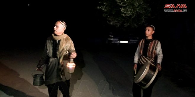 وفي لقاء مع مراسل سانا يقول المسحراتي أبو شهاب: “اعتدت على القيام بهذه المهمة التي ورثتها عن أبي والمحببة لدي منذ زمن طويل، لإيقاظ الناس على السحور”، مبيناً أن جولته تبدأ منذ الساعة الثانية ليلاً، وتنتهي مع قرب آذان الفجر والإمساك عن الطعام، يجوب خلالها شوارع وأزقة المدينة لإيقاظ الناس.