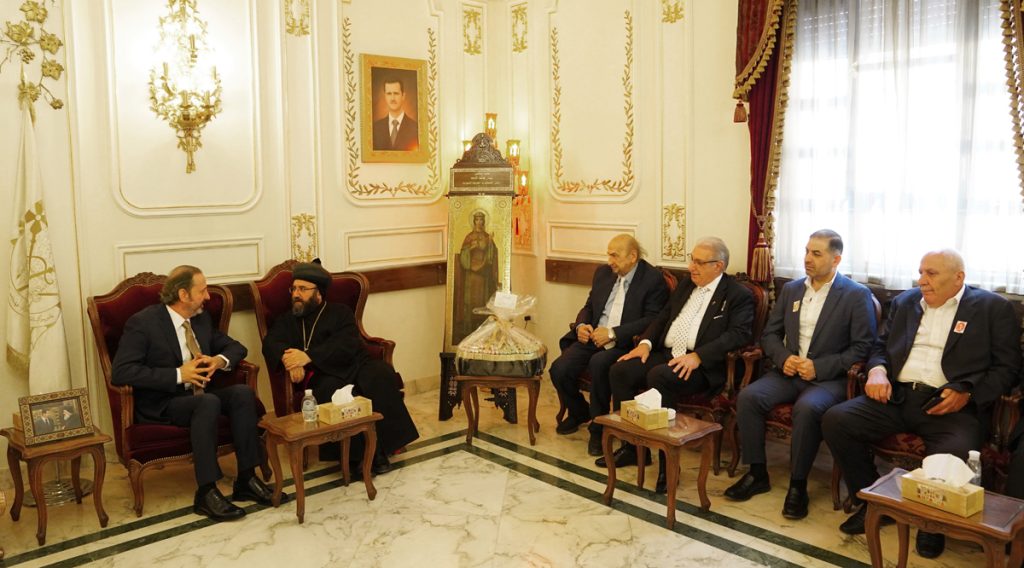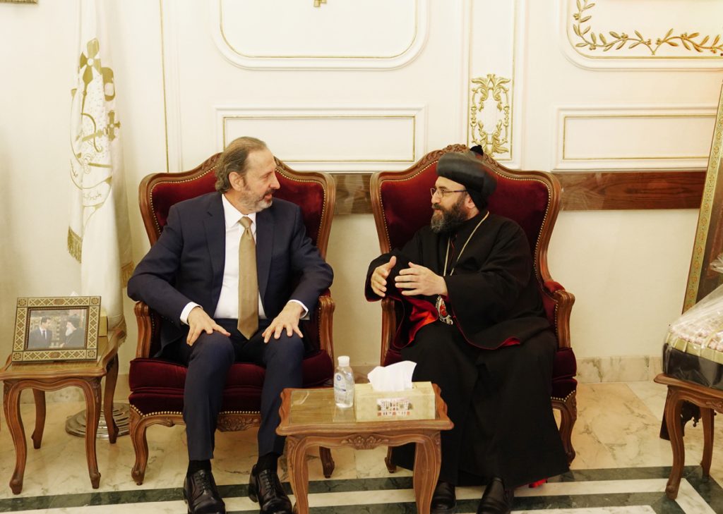 وزار الوزير عزام أيضاً بطريركية السريان الأرثوذكس بدمشق والتقى النائب البطريركي في أبرشية دمشق البطريركية المطران مار كيرلس بابي، ونقل له ولأبناء الطائفة الكريمة تهاني وتبريكات الرئيس الأسد بعيد الفصح المجيد.