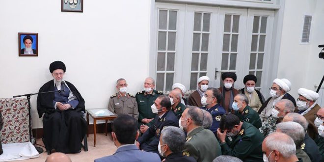وخلال لقائه اليوم مع كبار المسؤولين والقادة من الجيش والقوات المسلحة الإيرانية شدد الخامنئي على ضرورة الاهتمام بخطط العدو الطويلة والمتوسطة المدى، لافتاً إلى أن قوى الاستكبار تعمل على النفوذ في أي مكان ترى فيه مصلحتها.