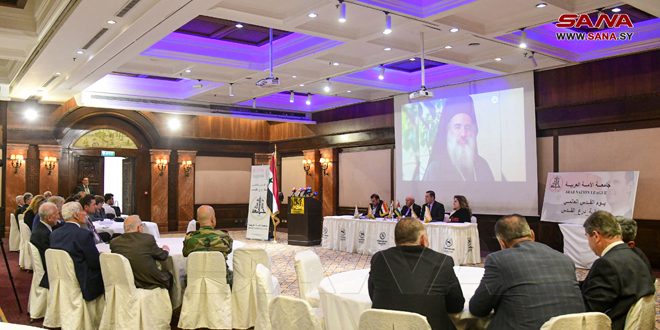 بمناسبة يوم القدس العالمي أقامت مؤسسة جامعة الأمة العربية مساء اليوم ورشة عمل تحت عنوان “الضفة درع القدس” وذلك في فندق شيراتون دمشق.