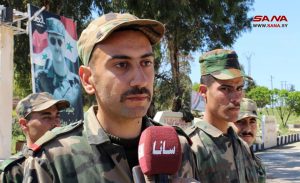 كما بين المقاتل إبراهيم أننا نعيش اليوم ذكرى جلاء آخر جندي للمستعمر الفرنسي عن تراب الوطن، وكلنا تصميم وإرادة على متابعة درب من سبقنا في التضحية والفداء، من خلال الاستمرار في ساحات التدريب والإعداد البدني والنفسي، لنكون مع القوات المسلحة الدرع الحصين للوطن، نلبي النداء، ونبذل دماءنا سخية للذود عن حماه.
