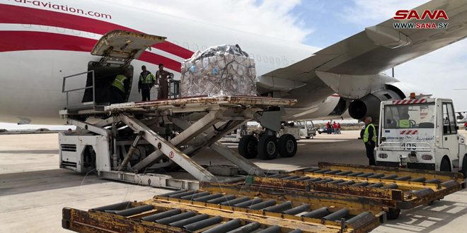 وذكر مراسل سانا أن الطائرة محملة بـ 40 طناً من المساعدات الطبية والإنسانية لدعم متضرري الزلزال.