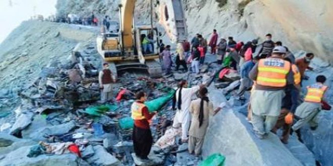 ونقلت وكالة “شينخوا” عن مصادر من منظمة “الإنقاذ 1122” قولها: إن الحادث وقع إثر صاعقة برقية ضربت المنطقة الحدودية بالقرب من أفغانستان تسببت بانزلاق أرض ضخمة، وانهار جزء من جبل، ما أدى إلى محاصرة عشرات الشاحنات التي كانت تنتظر عبور الحدود، وإصابة ثمانية أشخاص، وفقدان العشرات.