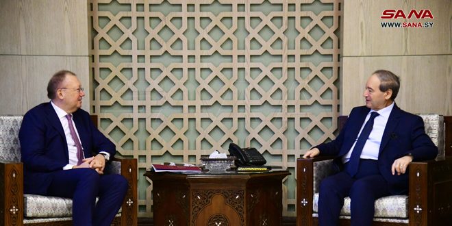 استقبل وزير الخارجية والمغتربين الدكتور فيصل المقداد عميد الأكاديمية الدبلوماسية في وزارة الشؤون الخارجية في الاتحاد الروسي ألكسندر ياكوفينكو.