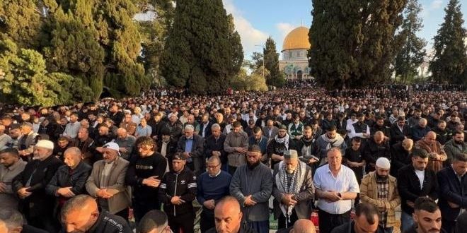 ونقلت وكالة وفا عن دائرة الأوقاف في مدينة القدس المحتلة قولها: “إن أكثر من 120 ألف مصل أدوا صلاة العيد في ساحات وداخل المسجد الأقصى المبارك، رغم إجراءات الاحتلال المشددة”، مشيرة إلى أن قوات الاحتلال حاولت منع الفلسطينيين من الوصول إلى المسجد، واعتدت عليهم بالضرب قرب باب الأسباط أثناء توجههم لإداء الصلاة.