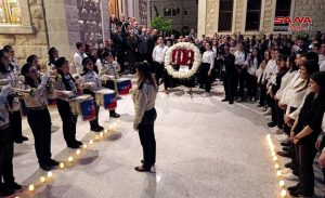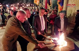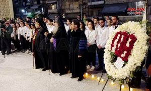 كما تضمنت الأمسية وضع أكاليل الزهور وإضاءة الشموع تخليداً لذكرى ضحايا الإبادة الأرمنية وشهداء الحرب على سورية.