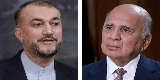 بحث وزير الخارجية العراقي فؤاد حسين مع نظيره الإيراني حسين أمير عبد اللهيان تعزيز أوجه العلاقات الثنائية، وأهمية الارتقاء بآفاق التعاون في كل المجالات إلى ما يلبي طموح البلدين.