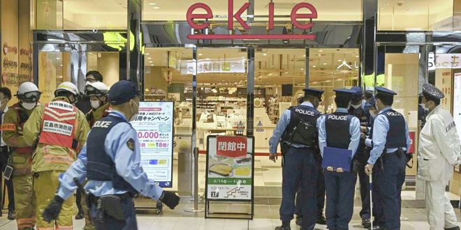 ونقلت وكالة (اسوشيتد برس) عن شرطة هيروشيما قولها: إنها “أرسلت فريقاً للتعامل مع المتفجرات ووحدة لمكافحة الإرهاب بعد إجلاء جميع العملاء والموظفين بشكل مؤقت وإغلاق مبنى (ايكي) التجاري المزدحم”.