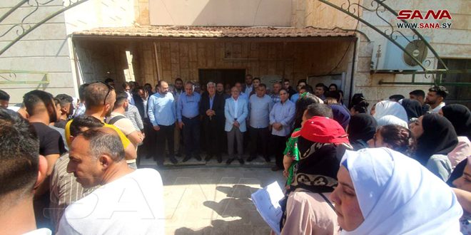 نفذ طلبة كليات فرع جامعة الفرات في الحسكة اليوم اعتصاماً طلابياً أمام كلية الهندسة الزراعية في الحسكة تنديداً بالاعتداء على عميد الكلية الدكتور قصي العمر، ورفضاً لانتهاكات ميليشيا (قسد) المرتبطة بالاحتلال الأمريكي المتواصلة التي تستهدف العملية التعليمية في مختلف مراحلها في المحافظة.