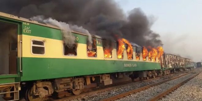 ونقلت وكالة أسوشييتد برس عن محسن سيال المسؤول بالسكك الحديدية الباكستانية قوله: إن النيران اشتعلت في القطار في منطقة خيربور شمال كراتشي عاصمة إقليم السند، ما أدى إلى مصرع سبعة أشخاص، مشيراً إلى أن النيران دمرت عدة مقطورات من القطار، فيما لا تزال التحقيقات جارية لمعرفة ملابسات الحادث.