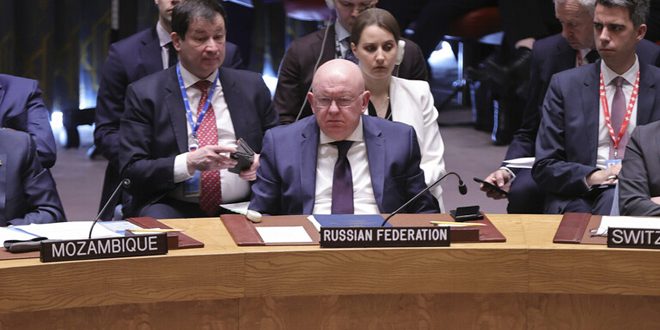 أكد مندوب روسيا الدائم لدى الأمم المتحدة فاسيلي نيبينزيا أن آلية نقل المساعدات الإنسانية إلى سورية “عبر الحدود”، استنفدت قدراتها وتستخدم لأغراض أخرى غير متعلقة بالوضع الإنساني.