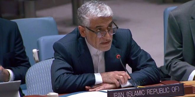 وشدد المندوب الإيراني على ضرورة تقديم مساعدات إنسانية محايدة وغير سياسية لجميع مناطق سورية، وكذلك التخطيط للمساعدات الإنسانية بطريقة تساعد على إعادة بناء البنية التحتية وتقوية الاقتصاد السوري، ودعم التنمية المستدامة وطويلة الأجل في البلاد.
