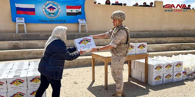 وزع مركز التنسيق الروسي في سورية مساعدات إنسانية وإغاثية على أهالي قرية خلخلة بريف السويداء الشمالي.