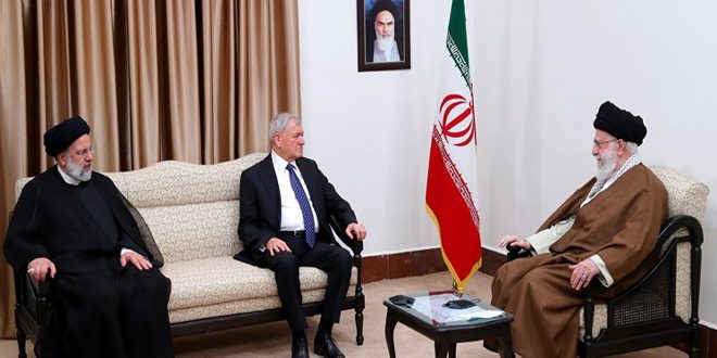وخلال استقباله الرئيس العراقي عبد اللطيف رشيد والوفد المرافق اليوم بحضور الرئيس الإيراني ابراهيم رئيسي قال الإمام الخامنئي: “إن الجمهورية الإسلامية الإيرانية تقف إلى جانب العراق وأمنيتها هي تقدم العراق” معتبراً أن تطوير التعاون رهن بالمتابعة الجادة للاتفاقيات التي تم التوصل إليها وخاصة الاتفاقيات الأمنية والاقتصادية الأخيرة.