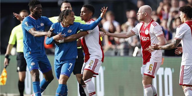 وتقدم أياكس في المباراة التي أقيمت على ملعب ” فينورد” بهدف في الدقيقة 42 سجله لاعب آيندهوفن جاراد برانثوايت بالخطأ في مرماه، ليتعادل حامل لقب الموسم الماضي بعدها بهدف سجله ثورجان هازارد في الدقيقة 67.