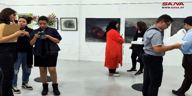 المعرض الذي يضم حوالي 25 لوحة من آخر نتاجات 12 فنان وفنانة من مختلف التيارات الفنية السورية يقدم للجمهور في البحرين صورة بانورامية عن آخر التجارب الفنية المهمة لفنانين لم يغادروا وطنهم زمن الحرب.
