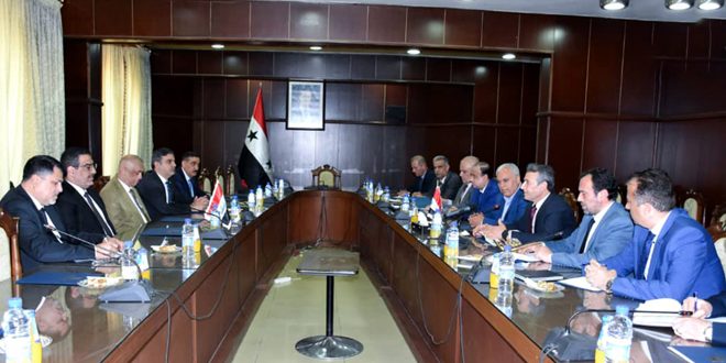 بحث وزير الصناعة الدكتور عبد القادر جوخدار مع وزير التجارة العراقي أثير الغريري والوفد المرافق له، آفاق تطوير العلاقات في المجال الصناعي بين البلدين الشقيقين.