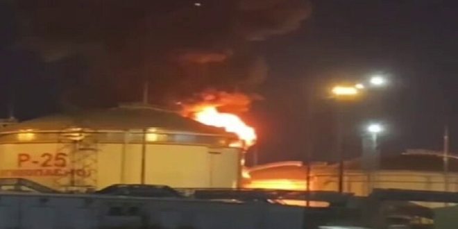 ونقل موقع RT عن كوندراتييف قوله في بيان: “في قرية فولنا بمقاطعة تمريوك اشتعلت النيران بخزان فيه منتجات نفطية، ووفقا للمعلومات الأولية، لا يوجد ضحايا أو جرحى، كما لا يوجد تهديد على سكان القرية”.
