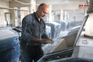 من جهته قال رئيس قسم “الصويل” في المطحنة المهندس خليل العوض بتصريح مماثل: إن عدد عمال القسم بلغ 12 أملاً موزعين على ثلاث فترات يعملون على استلام الاقماح و تنظيفها و إكسابها الرطوبة اللازمة للطحن، ما يضمن استمرار العمل على مدار الساعة.