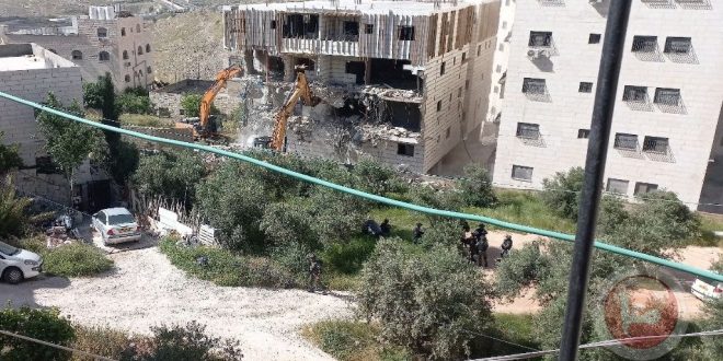 وذكرت وكالة وفا أن أعداداً كبيرة من قوات الاحتلال اقتحمت المنطقة، وحاصرت البناء المكون من ستة طوابق تضم 16 منزلاً، وقامت بهدمه.