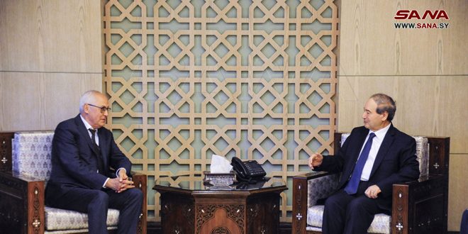 استقبل وزير الخارجية والمغتربين الدكتور فيصل المقداد المنسق المقيم للأمم المتحدة ومنسق الشؤون الإنسانية والمسؤول الأمني المعين بالإنابة مصطفى بن المليح، في لقاء وداعي عقب انتهاء مهامه في سورية.