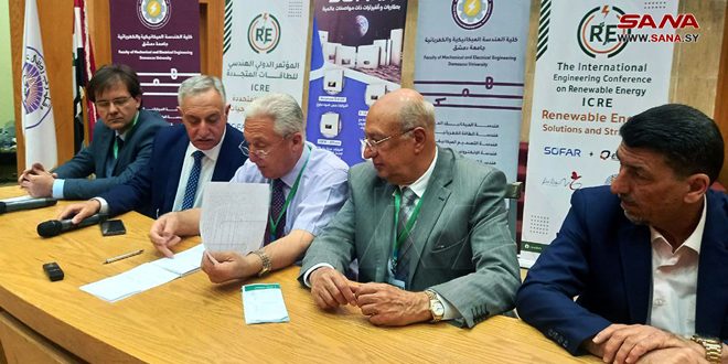 أوصى المشاركون في ختام المؤتمر الدولي الأول للطاقات المتجددة الذي نظمته كلية الهندسة الميكانيكية والكهربائية بجامعة دمشق على مدى ثلاثة أيام بضرورة تطوير التشريعات الناظمة للاستثمار الخاص، وبناء الشركات الاستثمارية المساهمة، والقيام بتنفيذ مشاريع باستطاعات كبيرة من 100 وحتى 300 ميغاوات في مجال الرياح والطاقة الشمسية.