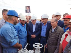 والتقى الوزير بالعاملين في الموقع وطواقم الحفر وأشاد بجهودهم الكبيرة والمثمرة رغم الظروف الصعبة، مشيراً إلى أن الوزارة تفخر بكل كوادرها، نظراً لأهمية الدور الوطني الذي يقومون به في دعم الإنتاج وتعويض الفاقد والمساهمة في دعم الاقتصاد الوطني.
