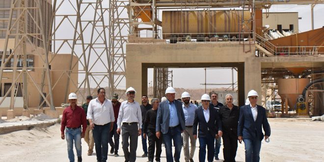 اطلع وزير النفط والثروة المعدنية الدكتور فراس قدور على واقع العمل في مناجم الفوسفات بتدمر، حيث تفقد الأعمال المنجمية في مناجم خنيفيس والأبتر والشرقية، ومعامل تركيز وغسيل وتجفيف الفوسفات.