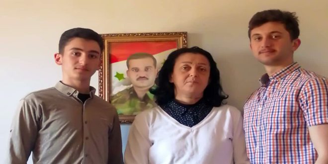 وأشارت مخلوف إلى أن استشهاد زوجها دفاعاً عن الوطن هو وسام تفتخر به، وأنها ستصون الأمانة التي تركها وتحرص على تنفيذ وصيته برعاية ولديهما، وغرس القيم الإنسانية والوطنية التي لطالما تحلى بها والدهما بداخلهما حتى يكبرا، ويتمكنا من مواصلة مسيرة الدفاع عن الوطن بالعلم والمعرفة.