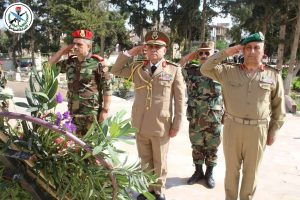 وبهذه المناسبة أيضاً قام قادة المناطق العسكرية بزيارة مثاوي الشهداء، ووضعوا أكاليل من الزهر باسم السيد الرئيس الفريق بشار الأسد القائد العام للجيش والقوات المسلحة على النصب التذكارية للشهداء، وقرؤوا الفاتحة وأدوا التحية الرسمية إجلالاً وإكباراً لأرواحهم الطاهرة، كما قاموا بزيارة جرحى الجيش العربي السوري في المشافي العسكرية، وقدموا التهاني وتمنوا لهم الشفاء العاجل والصحة والعافية.
