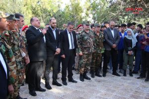حضر الاحتفالية أمين فرع حزب البعث العربي الاشتراكي بالسويداء فوزات شقير، وفعاليات رسمية وحزبية وأهلية، وذوو الشهداء.