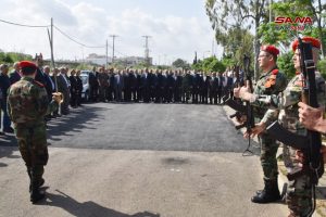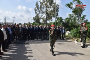 كما زار محافظ حمص المهندس نمير مخلوف، وأمين فرع حمص لحزب البعث عمر حورية، وقائد المنطقة الوسطى اللواء لؤي عليا روضة شهداء الفردوس في حي الأرمن بالمدينة، ووضعوا إكليلاً من الزهور على النصب التذكاري للشهداء، وعزفت الفرقة النحاسية لموسيقا الجيش لحني الشهيد ووداعه، وذلك بمشاركة حشد من الفعاليات الرسمية والشعبية وذوي الشهداء.