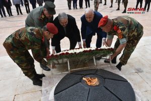 وفي مقبرة الشهداء في طرطوس وضع محافظ طرطوس عبد الحليم عوض خليل وأمين فرع حزب البعث العربي الاشتراكي محمد حسين وقائد الشرطة العميد وفيق أبو دلة ووزير التربية الدكتور دارم طباع إكليلاً من الزهور على ضريح الجندي المجهول.