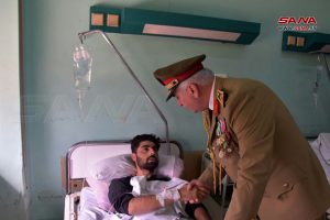 كما زار المحافظ مشفى الأسد العسكري ، والتقى عدداً من جرحى الجيش، واطلع على أوضاعهم، مثمناً تضحياتهم في سبيل الحفاظ على الوطن عزيزاً كريماً.