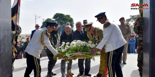 وكان محافظ السويداء وأمين فرع حزب البعث زارا بهذه المناسبة صباح اليوم النصب التذكاري للشهداء في بلدة المزرعة، يرافقهما رئيس مجلس المحافظة وقائد الشرطة، وعدد من أعضاء مجلس الشعب، وفعاليات رسمية ونقابية وعسكرية وشعبية، حيث تم وضع إكليل من الزهور عليه، وقراءة الفاتحة على أرواح شهداء الوطن واستذكار بطولاتهم وتضحياتهم.