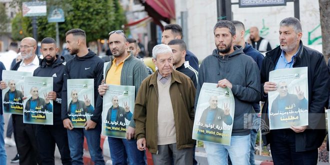 وذكرت وكالة وفا أن المشاركين في الوقفة التي نظمتها فعاليات شعبية فلسطينية في رام الله رفعوا صورا للأسرى وشعارات تطالب بالإسراع بإطلاق سراحهم وخاصة الأسير دقة من معتقلات الاحتلال مطالبين المجتمع الدولي بالضغط على سلطات الاحتلال للأفراج عنه في ظل التدهور الخطير بصحته نتيجة الإهمال الطبي من قبل سلطات الاحتلال.