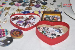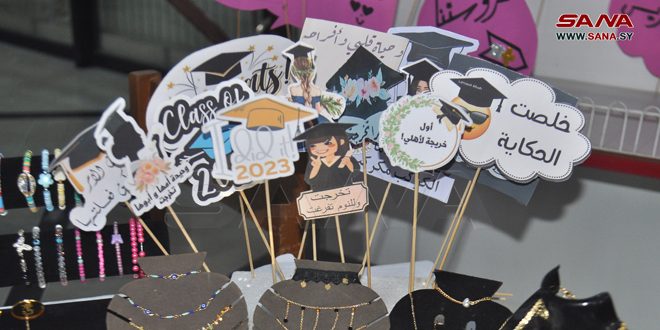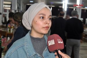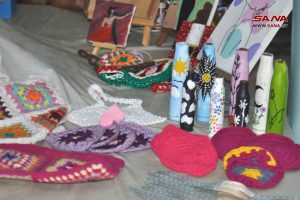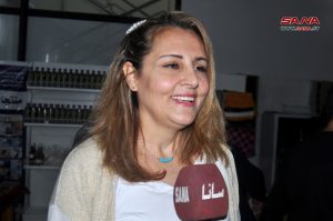 الجريحة علا سليمان والتي أصيبت بالشلل جراء شظايا قذيفة الإرهاب التي غدرت بساقيها في أثناء سفرها لدمشق لزيارة طبيب العيون قالت: إنها تشارك لأول مرة في المعرض لتعبر عن تمسكها بالحياة فأبت أن تستسلم وقررت الاستمرار في الدراسة والاستعداد للخوض في مشروعها الخاص وهو عبارة عن تصنيع إكسسوارات لتزيين الشعر تفننت في صناعتها بمختلف الألوان والأشكال بالإضافة للعمل في مجال الصوف والصدف.
