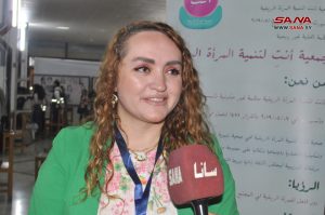 وللمرة الثالثة على التوالي تشارك المهندسة الزراعية لين دريباتي رئيس مجلس إدارة جمعية (أنت) لتنمية المرأة الريفية، والتي تعنى بالنساء الريفيات وتمكينهم من إقامة مشاريع متناهية الصغر بالإضافة للتوعية والتنمية والتمكين في مختلف المجالات الأخرى، لافتة إلى أن مشاركة الجمعية اليوم كانت بهدف عرض مختلف الصناعات اليدوية والتي قاموا بتعليمها للنساء، كصناعة المنظفات والغذائيات، وتسويقها لتمكينهم من تحقيق دخل مادي ربحي يعود بالمنفعة المادية على النساء وأسرهن.