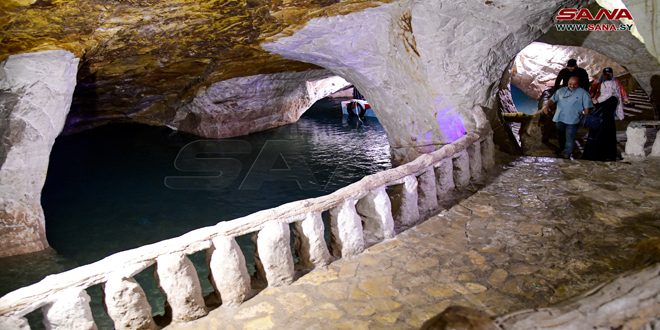 ولفت إلى أن المغارة تضم مطاعم صيفية وشتوية وتراساً خارجياً معزولاً ومخدماً بقوارب وكافتريا وسوقاً شعبياً للمهن اليدوية يحوي صناعات شرقية وتراثية وهدايا وتحفاً ومنحوتات إلى جانب بحيرات صغيرة لا يزيد عمقها على 3 أمتار، منها بحيرة التمني والبركة التي يقصدها الزوار من كل مكان، مبيناً أن المغارة تقع على عمق 300 متر ومساحتها 7000 متر مربع ويعمل فيها نحو40 عاملاً.