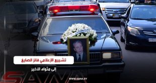 بحضور إعلامي وثقافي وشعبي كبير جرت بدمشق مراسم تشييع الإعلامي الدكتور فائز إلياس الصايغ، بعد مسيرة إعلامية حافلة بالعطاء إلى مثواه الأخير في مقبرة باب شرقي بدمشق عن عمر ناهز الـ 76 عاماً.