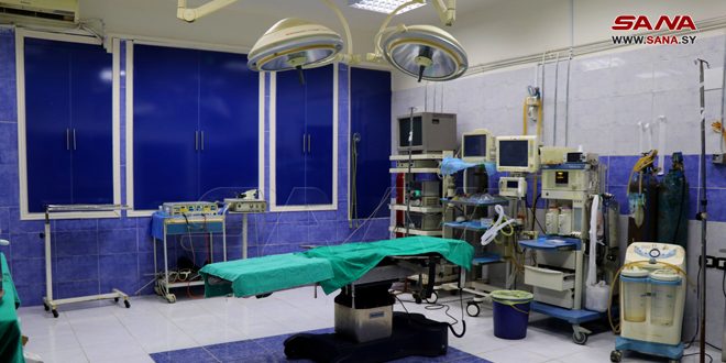 وأضاف مسالمة: إنه تم العمل على إعادة تأهيل قسم العمليات الباردة وما زال غير مفعل بسبب نقص الأجهزة والمعدات اللازمة لوضعه بالخدمة، أما بالنسبة لقسم الاستجابة الطارئة فقد تم تأهيله أيضاً بالكامل، حيث تم تزويد القسم بغرفة لطبيب وغرفة تمريض و3 غرف للاستجابة الطارئة في حال حدوث عارض صحي طارىء وكل غرفة من غرف الاستجابة تحتوي على 5 أسرة مع وجود مستودع تابع لهذا القسم.
