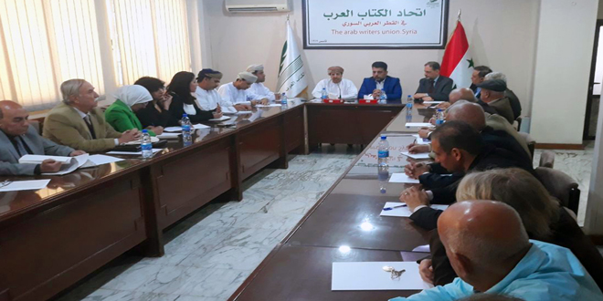 تركز اللقاء الحواري لرئيس هيئة الوثائق والمحفوظات الوطنية في سلطنة عمان الدّكتور حمد بن محمد الضوياني حول أهمية التوثيق الثقافي والتعاون بين سورية وسلطنة عمان، بحضور رئيس اتحاد الكتاب العرب الدكتور محمد الحوراني الذي أدار الحوار.